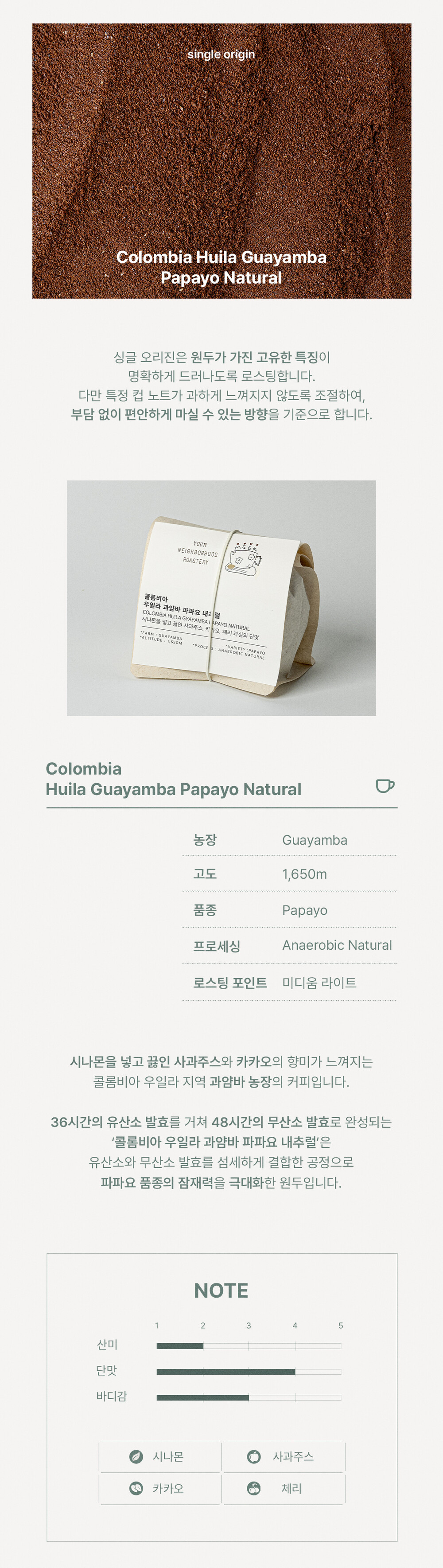 [싱글오리진] 콜롬비아 우일라 과얌바 파파요 내추럴